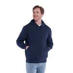 440 gsm - 13 oz./yd² - 21.5 oz./lin. yd 50% cotton, 50% polyester heavyweight fleece with PFC Free water repellent finish. Jersey lined hood with drawcord. Rib knit cuff and hem. Kangaroo pocket with triple needle topstitching and hidden pocket. Tear away label.