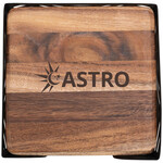 Acacia wood is native to tropical and subtropical regions of the world, particularly Australia and Africa. This stylish square coaster made of this natural hardwood makes a uniquely beautiful canvas for your logo. Acacia wood is ideal for protecting surfaces from condensation. It's perfect for heavy use and will last for decades, being a dense wood that is 23% harder than white oak. They're also easy to clean - simply wipe with a damp cloth and dry with a towel. An elegant metal stand showcases your logo and keeps the coasters handy for use.