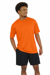 • 6.4 oz, 100% performance polyester interlock with wicking technology